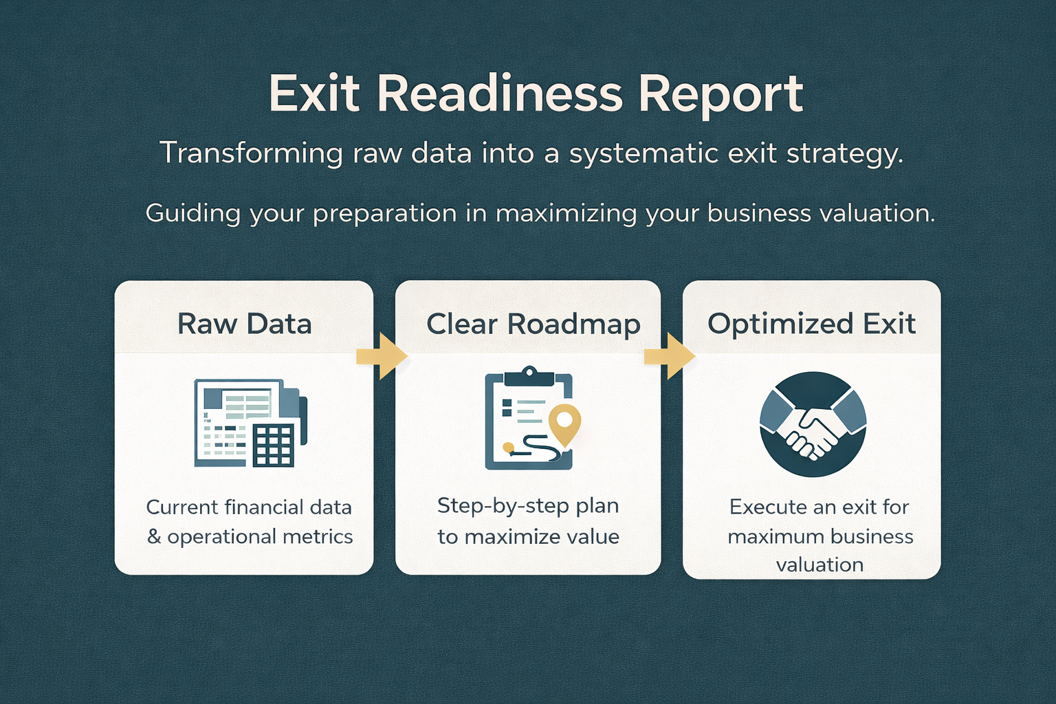 Our Exit Readiness Report™ turns raw data into a clear roadmap, helping you move from preparation to a premium-priced exit.